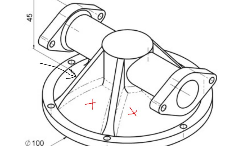 Is it possible to make such thing using ribs? I tried an inclined line from bottom edge to the circular edge at top. But when using ribs, the yellow offset sketches that shows the thickness of the rib actually don't intersect with the body so as expected it fails.