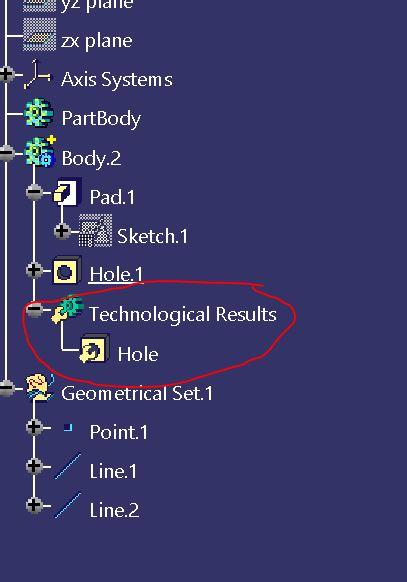 What is create technological result in CATIA V5?