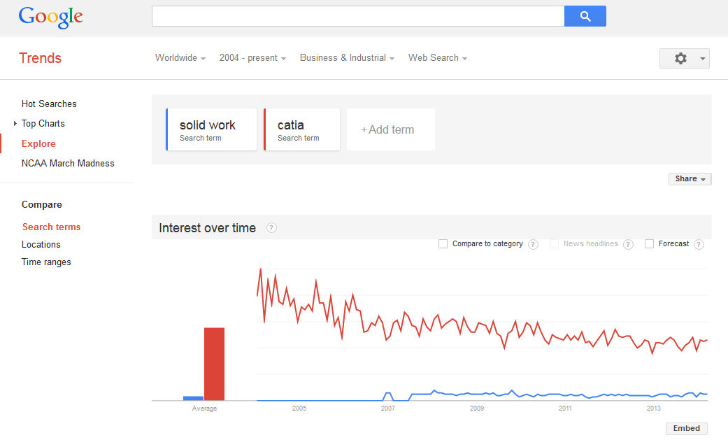 Plus the rendering in Solid Works is 100 times better that Catia or ProE.