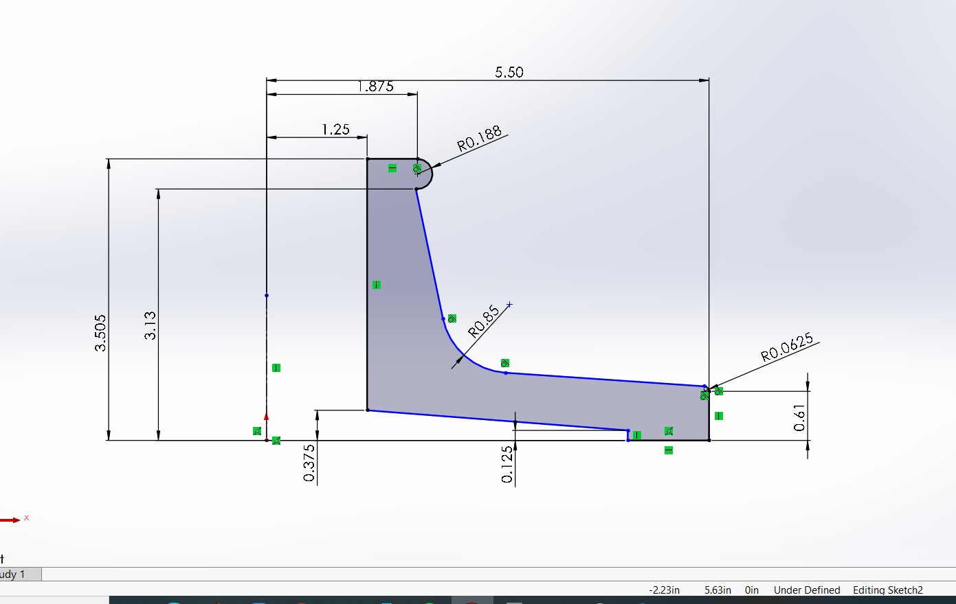 You’re missing the .964 height constraint to the edge of the . 851 fillet.