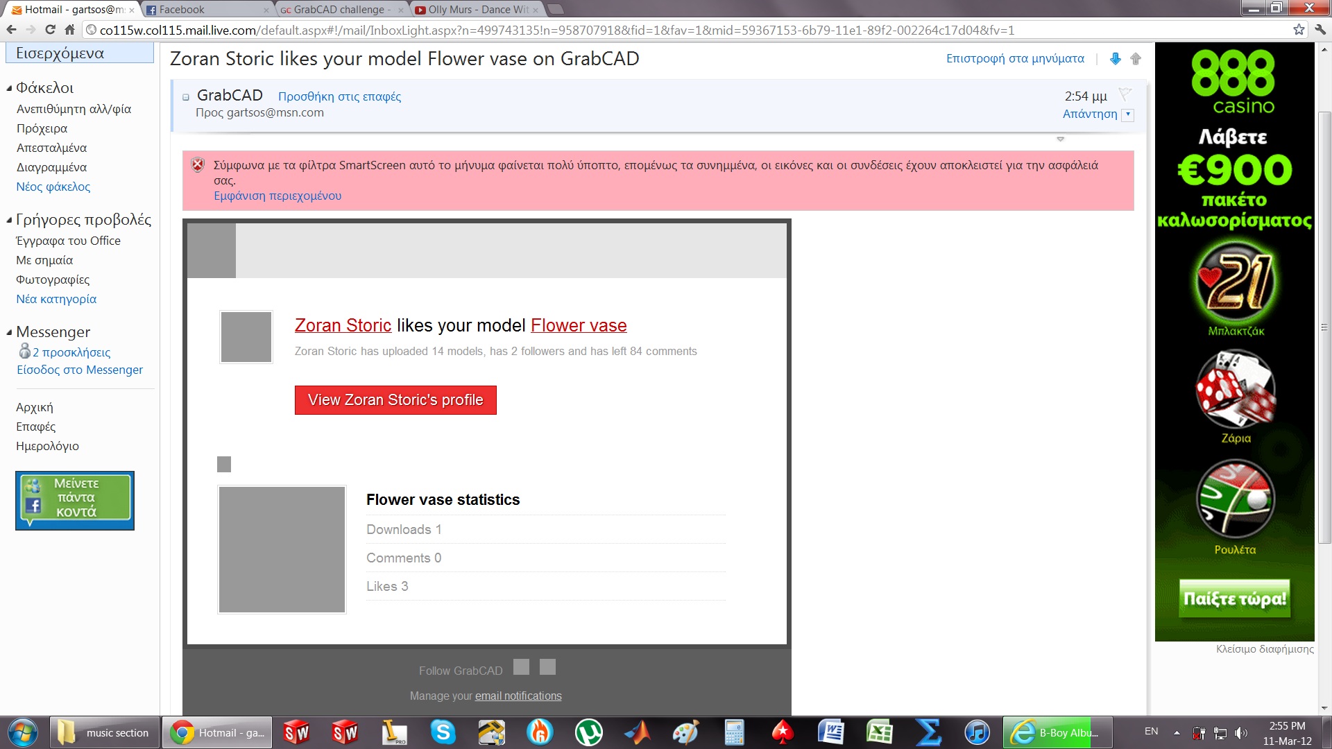 Hello there guys.. Yesterday i got some emails from grabcad (as always) about likes and comments on my parts.. But since yesterday, when i open the messages i get a message from windows live smartscreen filter.. why is that?? Never before this has happened to me..