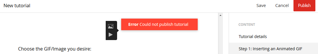 Why is it impossible to insert gif animation when creating tutorials?