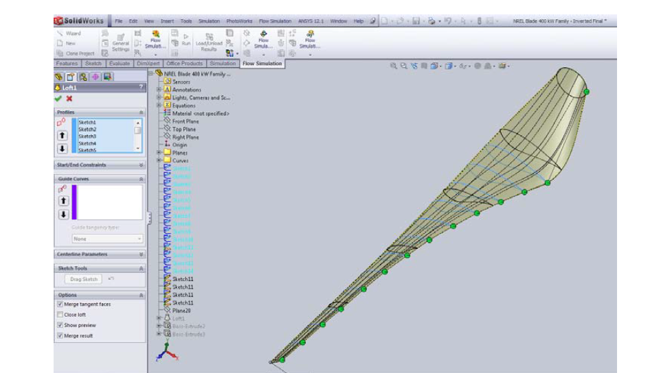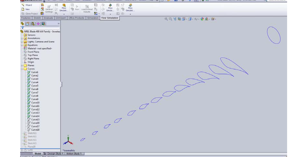 I designed the wind turbine blade in Qblade software chord lengths and twist angles, and generated the blade as sections and each section is defined by x y z in .dat file