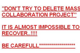 Please don't try to delete MASS Collaboration project in Work-bench. If you wanna out from collaboration or any sharing through work-bench than please tell the Author to remove you. He will remove you securely without any trouble. If you delete the collaboration project means, its too bad for all project's owner to do again so hard work to make it..!! //Thanks//