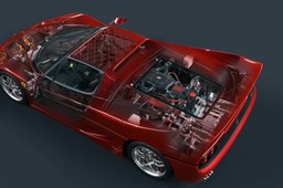 To create a cutaway, as shown above, you first need to render out separate images of the model using the same camera settings for each. For example: the first render is the car body, the second render is the car frame and so on. For this particular image, I rendered four separate images as shown below.
