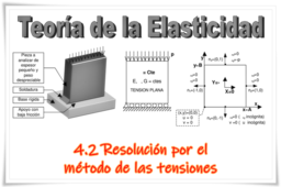 En este apartado veremos un ejemplo del método de las tensiones, que fue uno de los primeros intentos por resolver analíticamente el problema elástico basándose en la experiencia y conocimiento de casos particulares que permitían a los analistas "postular las funciones de tensión" de forma genérica como polinomios de cierto grado (que estimaban como aptos para cada componente de tensión) cuyos coeficientes se iban definiendo en la medida que eran reemplazados en las distintas ecuaciones del modelo elástico.
