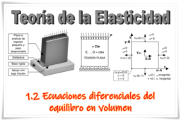Una vez que entendemos el carácter direccional de las tensiones en un sólido elástico, ya es posible plantear las primeras ecuaciones de la TEL, denominadas Ecuaciones Diferenciales de Equilibrio en Volumen, que resultan simplemente de hacer sumatorias de fuerzas y de momentos en un cubo de tamaño diferencial (todo lo demás son pasos algebraicos).