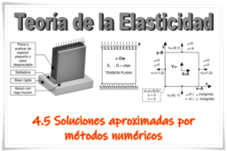 Teniendo todas las ecuaciones de la elasticidad lineal en un formato conveniente para su resolución, comprobamos que la vía analítica es muy compleja y restringida a geometrías y condiciones muy sencillas. Simplemente sucede que "la mayoría de las soluciones reales no son polinomios" ni tienen expresiones explícitas como quisiéramos. La óptica de resolución numérica plantea al menos dos grandes alternativas: aproximar derivadas con diferencias finitas (Método de las Diferencias Finitas MDF) o armar una función muy flexible, polinómica a trozos, comandada por "n" parámetros y obtener de forma aproximada los mismos "armando un sistema de nxn ecuaciones linealmente independientes" (Métodos de Resíduos Ponderados MRP, con el Método de Elementos Finitos MEF como caso particular). Lo más curioso es que, por distintos que parezcan estos métodos, es posible observar finalmente que todos ellos responden a la misma idea general: PROPONER UNA FUNCION Y APROXIMARLA A TRAVES DE LA PONDERACION DE LOS RESIDUOS QUE PROVOCAN EN LAS ECUACIONES DIFERENCIALES.