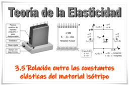 Para cerrar este capítulo, ya centrado en el material elástico isótropo, es conveniente estudiar dos cuestiones: la relación entre las tres constantes elásticas "E, G, nu" (que deben estar vinculadas porque el material isótropo solo depende de dos constantes) y los valores que puede adoptar el coeficiente de Poisson para ser consistente con la física (¿podrá ser negativo? ¿podrá valer 1 o más?
