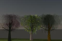 There are different ways to draw a 3d tree, this is my option. This way consent you to draw the trunk using 3d objects like cone and cylinder and join them in an only object. Then you assign the texture to this and the trunk is done. The difficult is to draw a convincing crown of the tree. My way allow you to do this enough easily. There's a problem: the time of rendering is very long: for one only tree I spend until 30/45 minutes in high resolution, in middle resolution less than 10 minutes.