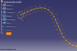 When a Helix command is used in CATIA, a line has to be selected as an axis. To create a helix curve along any curve, not only a straight line, follow these steps.