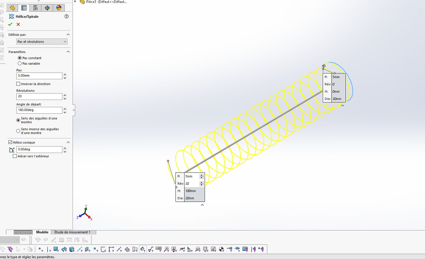 Sélectionner votre diamètre et remplir les paramètres dans Hélice/Spirale.
