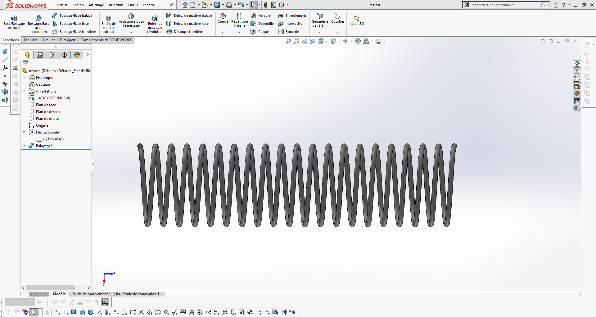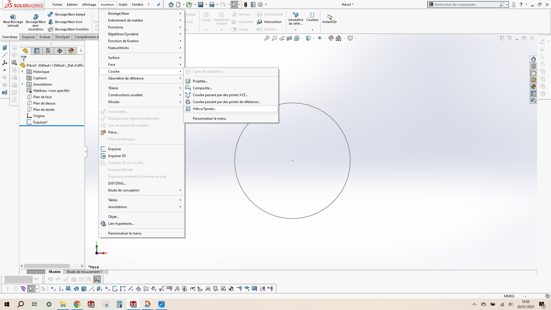 Fermer l'esquisse et rendez-vous dans le menu défilant Insertion, Courbe, puis sélectionner "Hélice et Spirale".