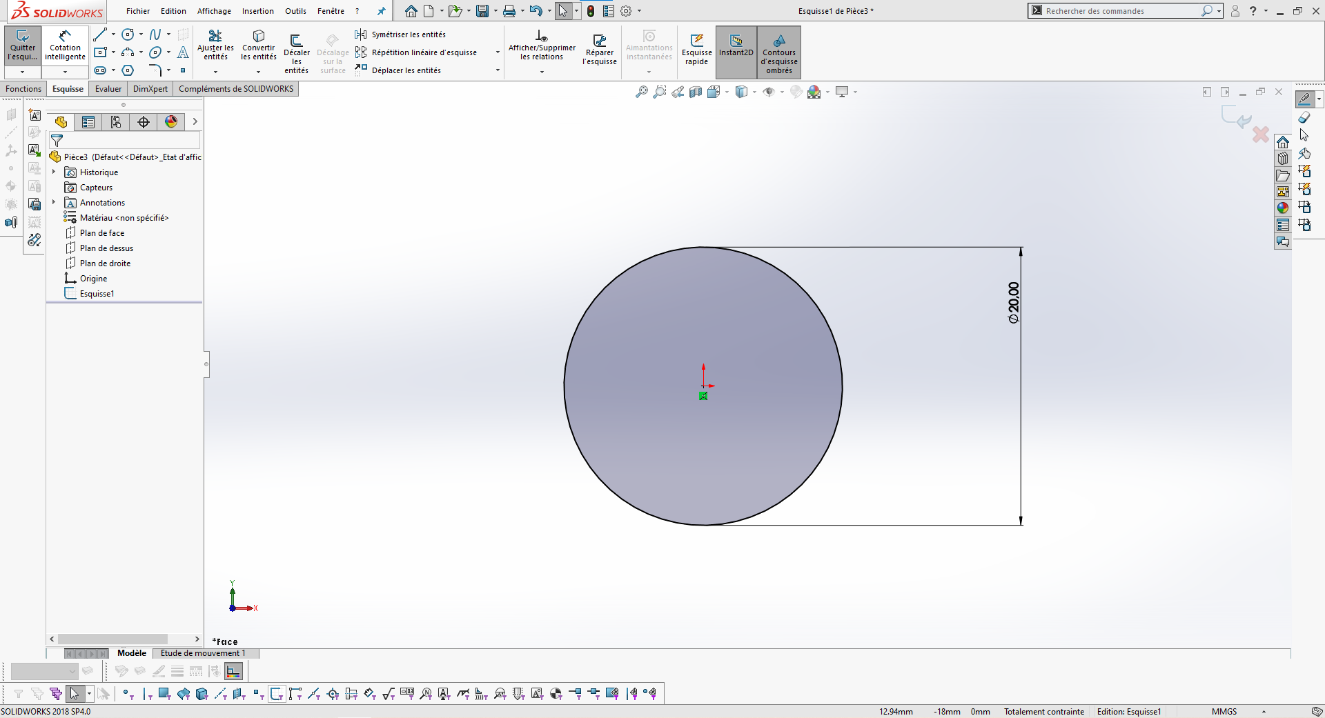 Dessiner sur une esquisse sur le Plan de Face d'un cercle du Ø que vous voulez.