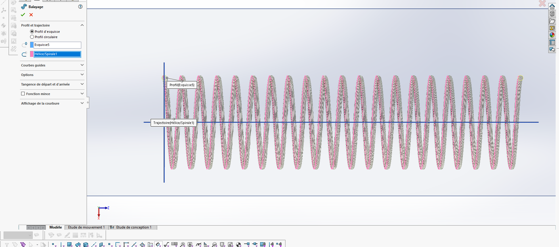 Puis sélectionner votre diamètre du ressort et la ligne qu'il doit suivre.