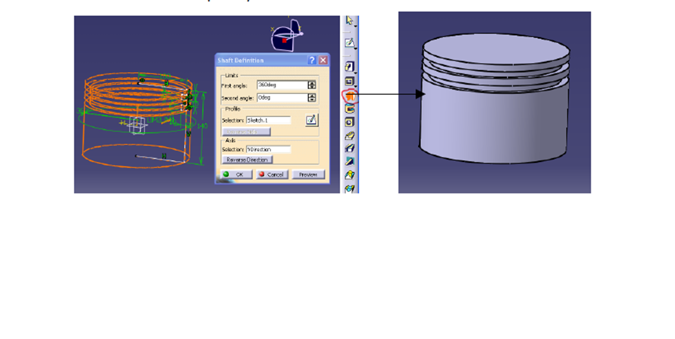 Exit Sketch and click the Shaft icon to select the axis of reference that axis