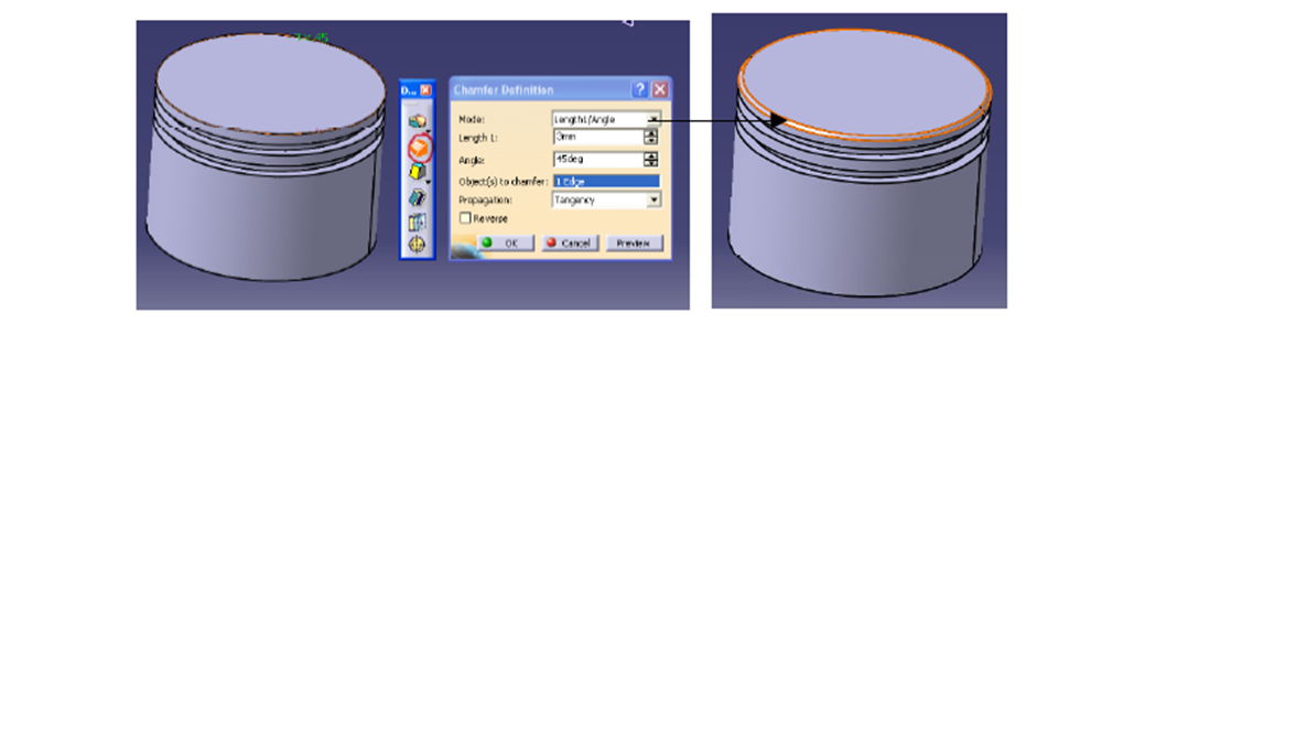 Click on the Chamfer icon to chamfer the pistol and select the edge,