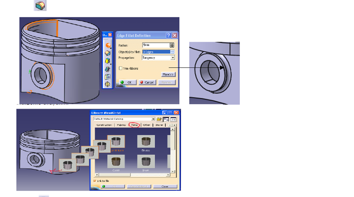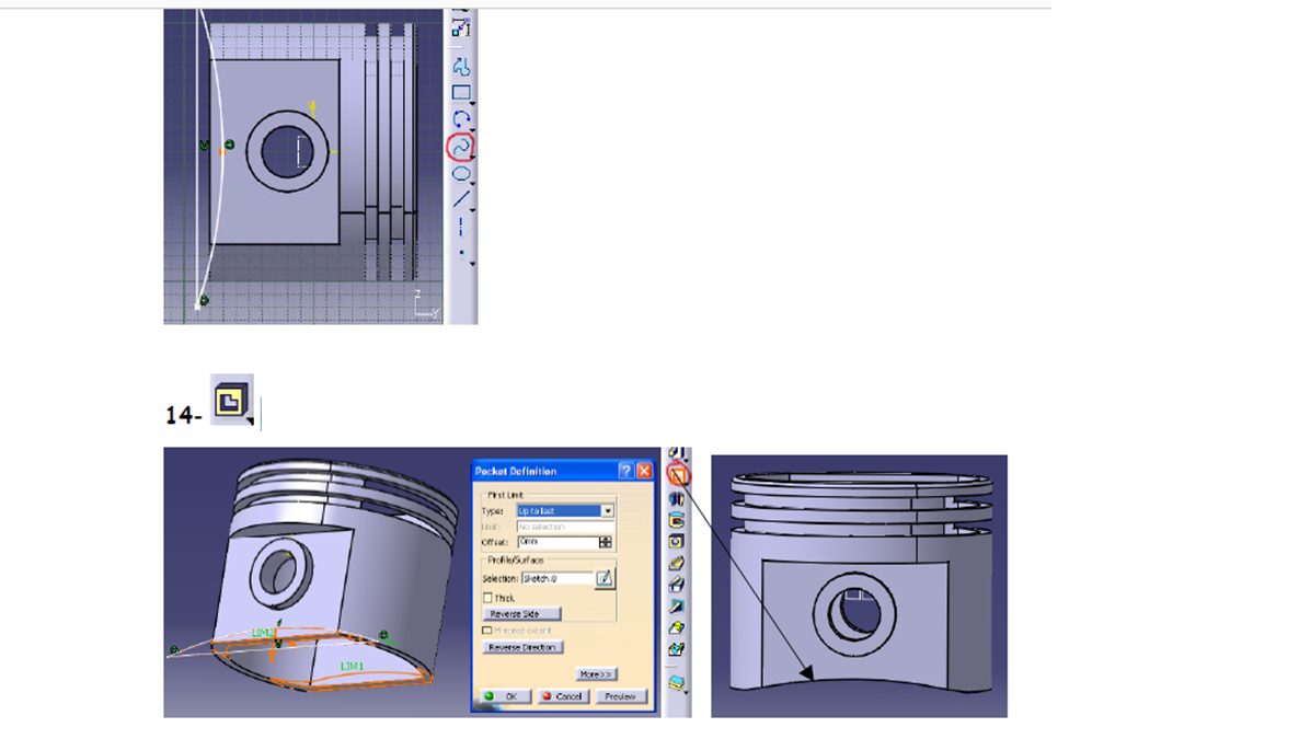 Create the geometry on the bottom surface of the piston using the Profile icon