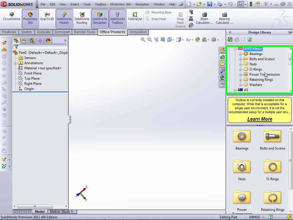 left double click on "ANSI Metric (outline item)" in "SolidWorks Premium 2012 x64 Edition