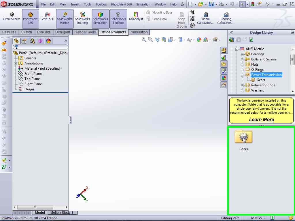 left double click on "Power Transmission (outline item)" in "SolidWorks Premium 2012 x64 Edition