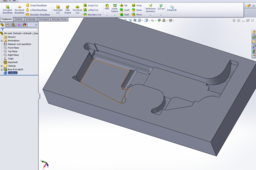 On this part, if I need to machine out a negative I want it to be the more simple of the two sides so that is how I decided the direction to extrude. use the sketch from the previous step and do an extruded boss feature and make sure you go past the part. this will be the negative.