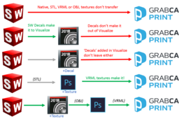 In my first tutorial about color 3D printing, we talked about how decals applied in SOLIDWORKS files don't transfer over to GrabCAD Print: