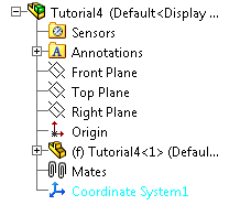 ➝ In the model window click the + in front of Tutorial4 to expand the Assembly tree.