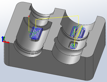 The Pencil strategy is a special finishing strategy which detects inner corner edges on the surface and creates a toolpath here. This method is particularly effective for finishing small radius fillets.