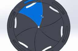In this version, the actuation is achieved by rotating the driving plate. This plate interacts with slots (guides) on each leaf, which in turn execute the opening or closing of the iris.