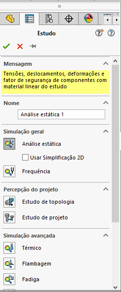 Após abrir os Novos Estudos você deve selecionar "Análise Estática"