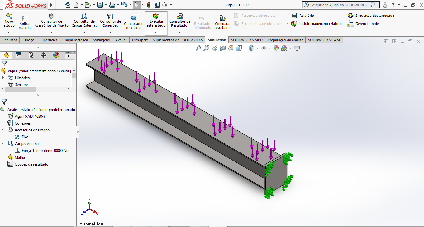 Agora que definimos a fixação iremos adicionar uma carga externa.