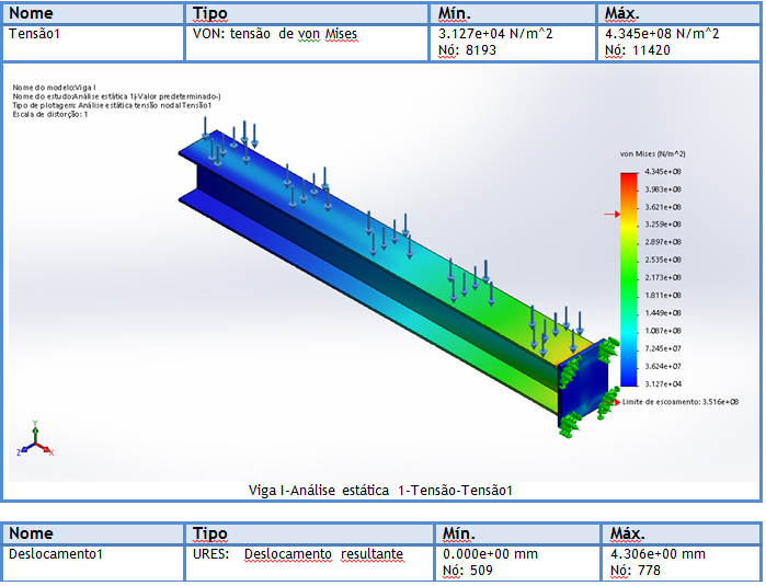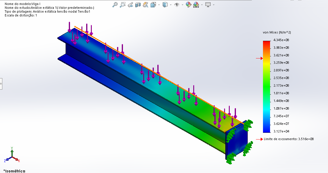 Após pronta a simulação ele apresentará diagramas de tensão, deformação e outros conforme desejado e selecionado nos resultados.
