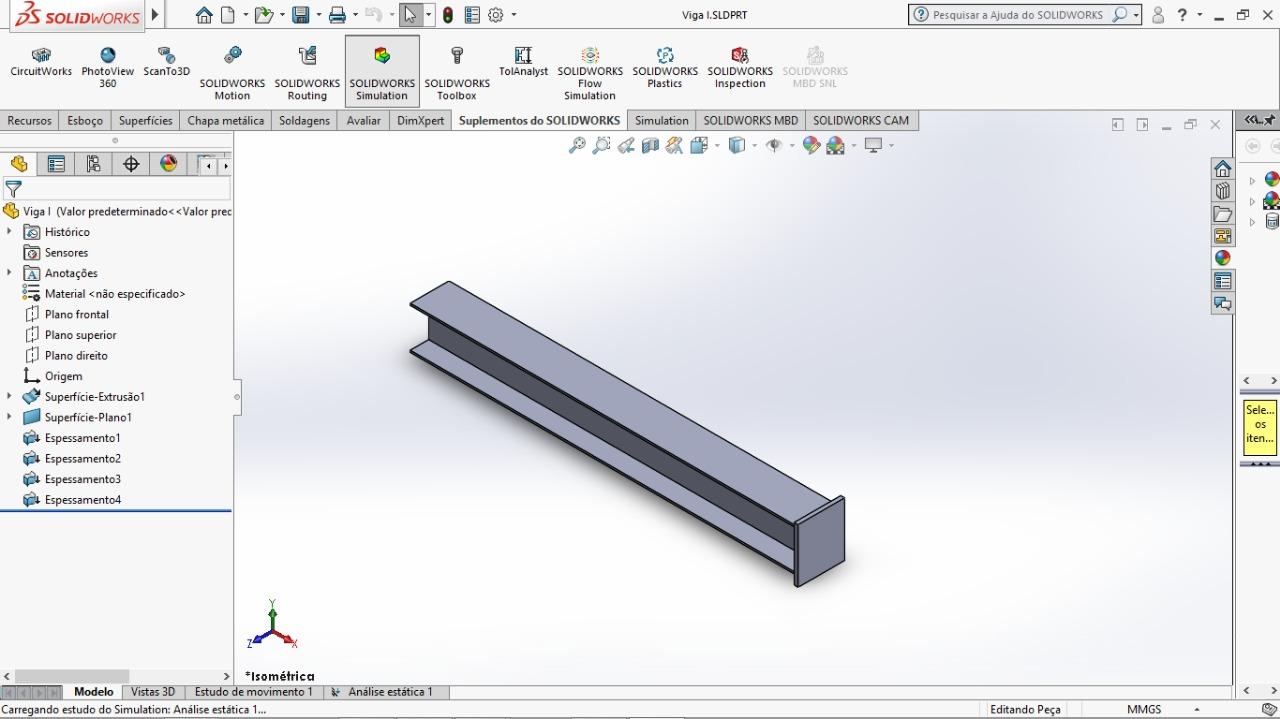 Tutorial sobre simulação de esforços estáticos em viga I, sendo que também apresento a parte da modelagem da viga, por recursos de superfícies. Também abordo a geração automática de relatórios após a simulação.