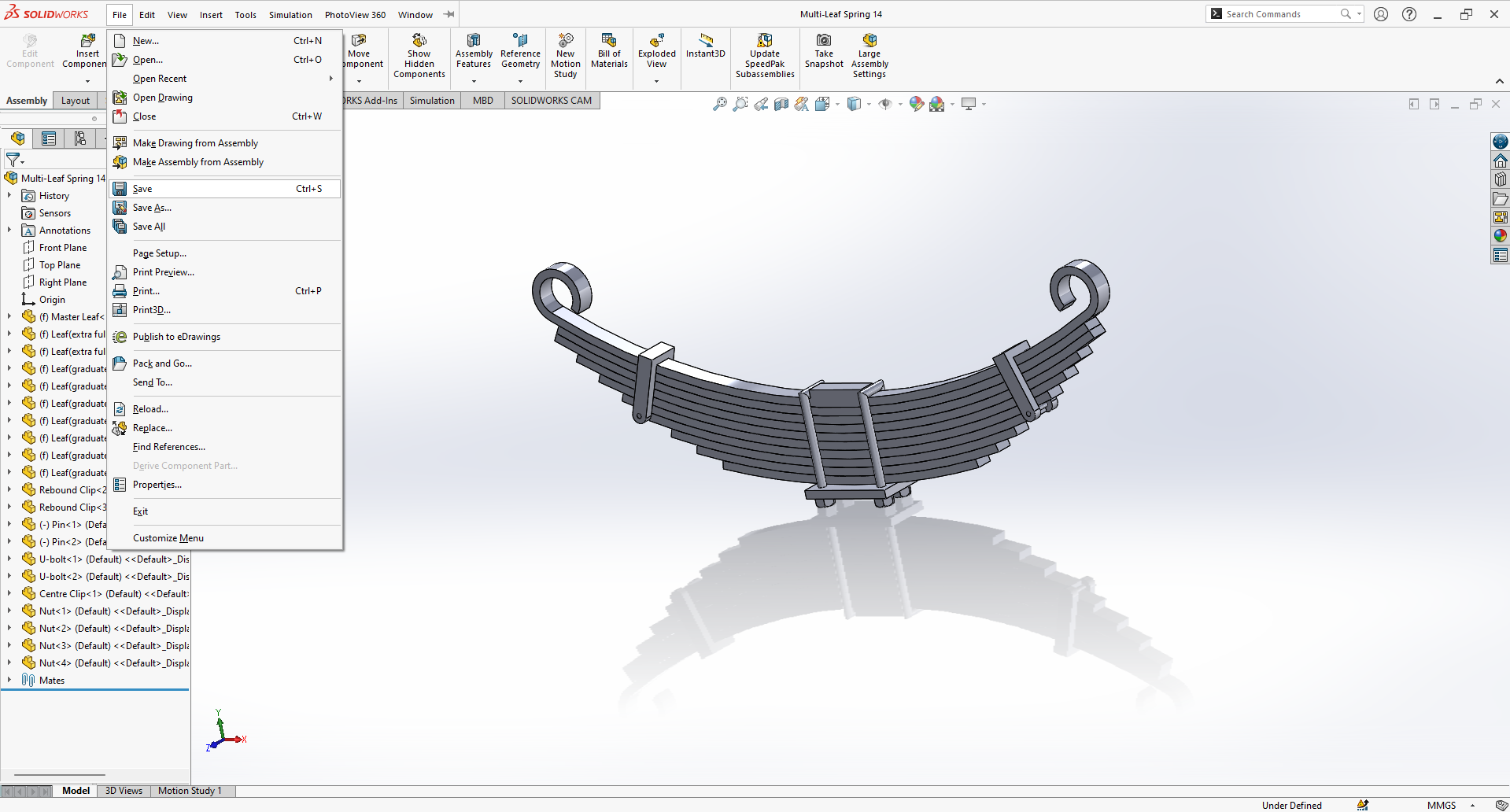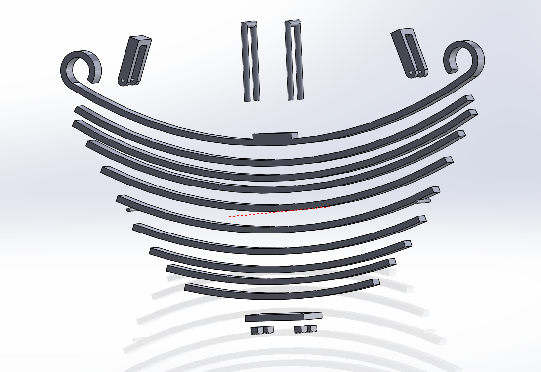 - Ensure that all individual parts of the leaf spring (leaves, center bolt, clamps, and any additional components) are already modeled and saved as separate part files.