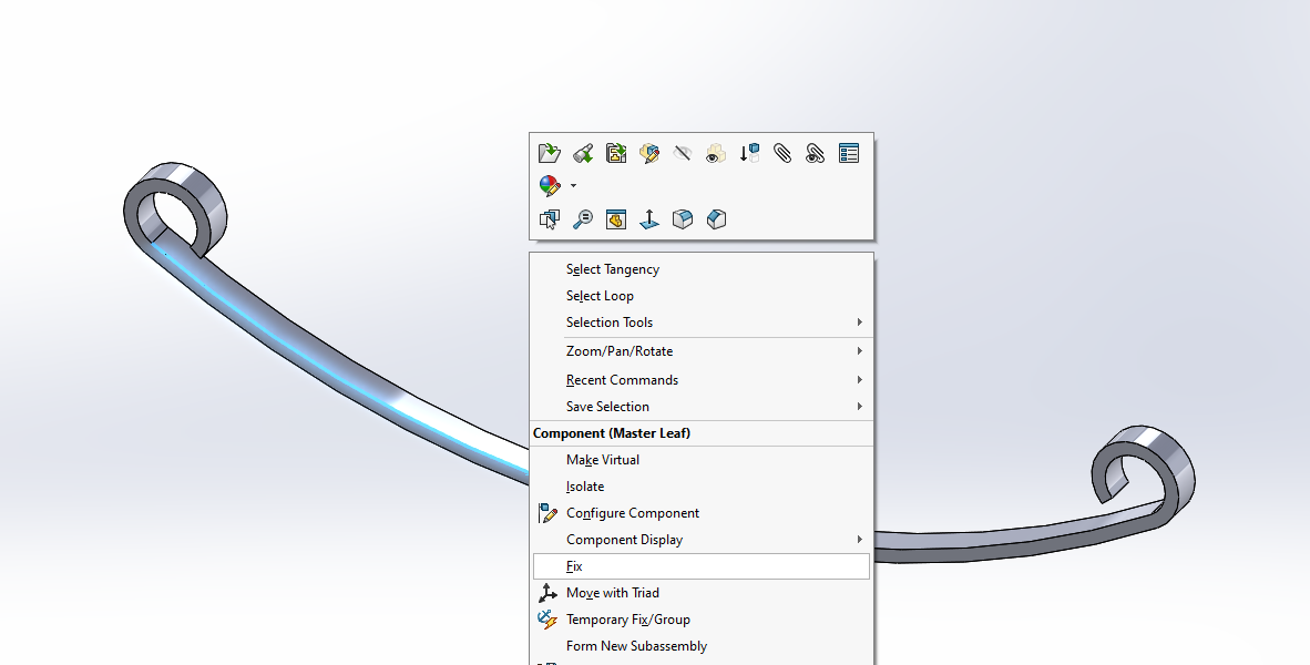 - Right-click on the main leaf component in the workspace and select Fix to lock it in place.