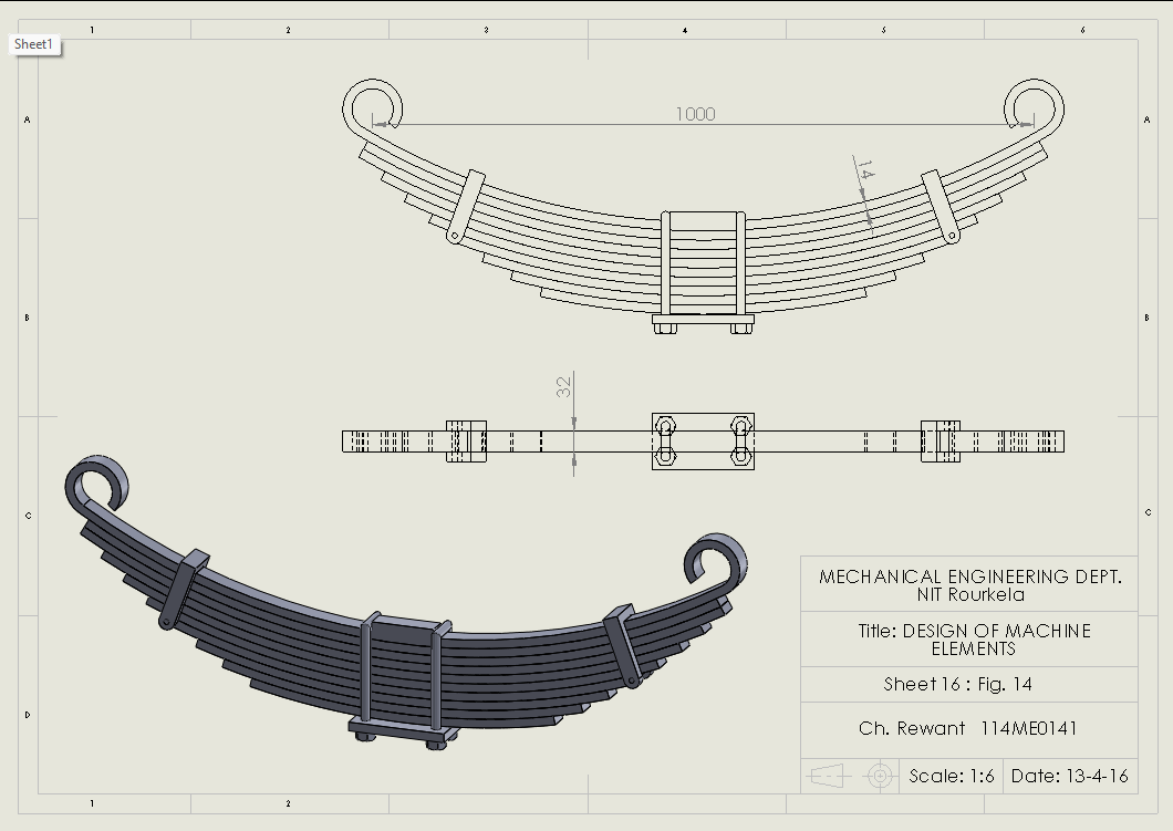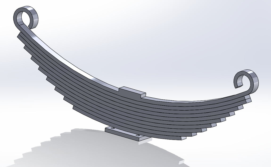 The Multi-Leaf Spring model is a robust and reliable suspension component designed to distribute load and absorb shocks in vehicles. Engineered with multiple layers of steel leaves, this spring provides enhanced strength and flexibility, making it ideal for heavy-duty applications. Designed using SolidWorks, it ensures durability and optimal performance in automotive suspension systems, particularly in trucks and off-road vehicles.