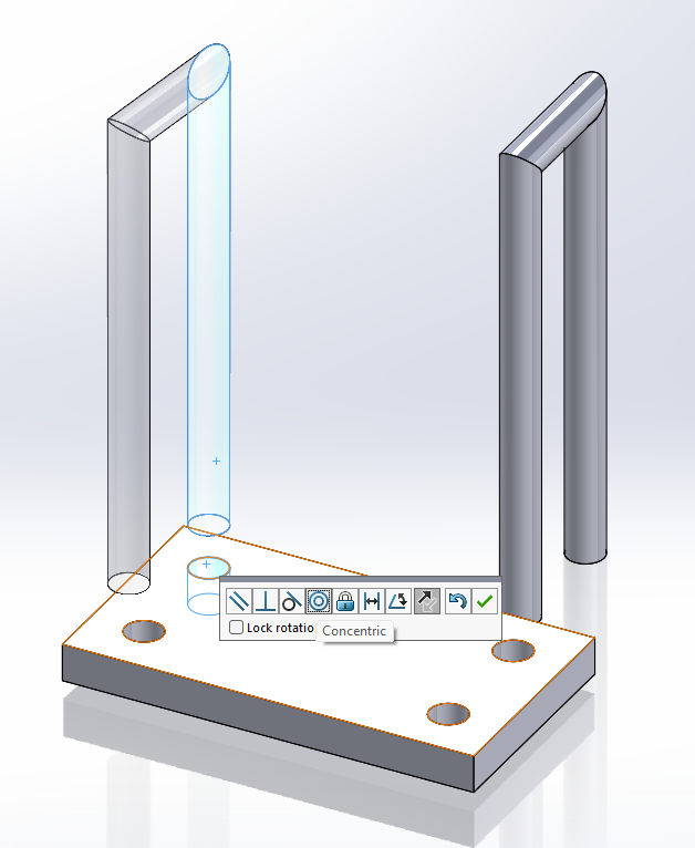 - Apply a Concentric Mate between the bolt's cylindrical face and the inner face of the leaf holes.