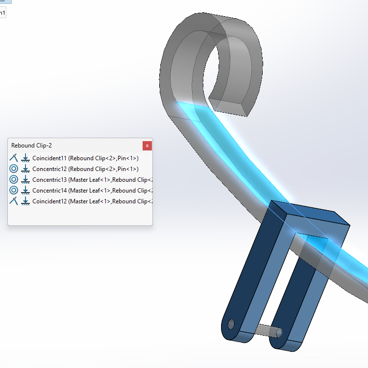 - Continue adding mates for all additional leaves in the spring stack until all are properly aligned.