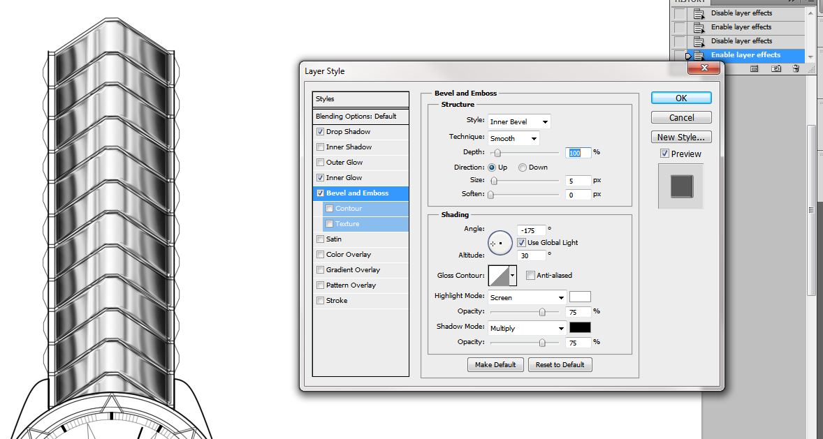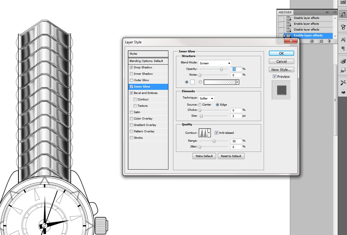 Rendering Realistic Chrome Photoshop tutorial 2ea76538 8 Nov, 2012 11:51 PM Part 5 Step 1: Inner Glow Step 2: Bevel and Emboss Was this tutorial useful? Like