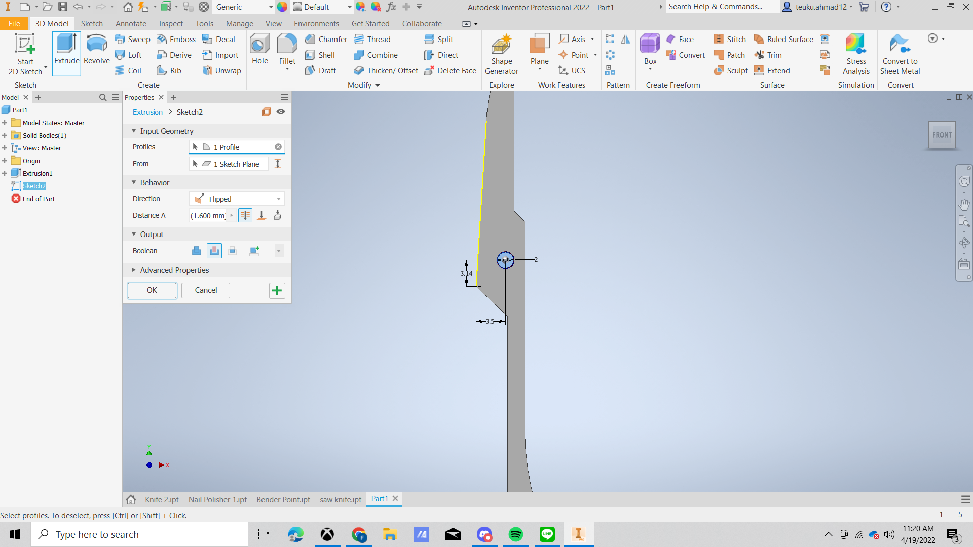 Extrude the scissor with the distance is 1.6 mm
