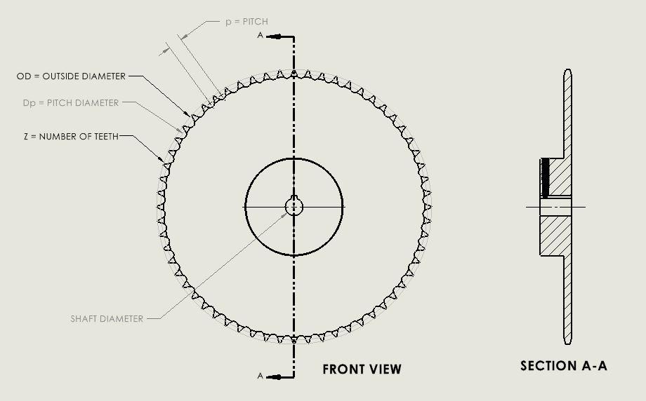 Now that we have defined our sprockets, let's go back to SolidWorks and create a sketch with the following parameters: