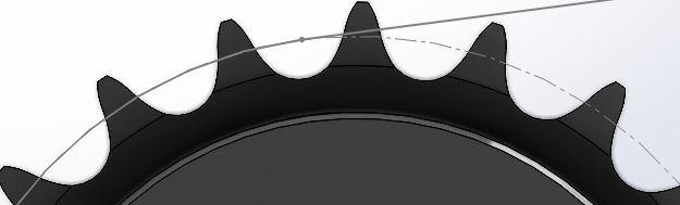 As you can see, the diametral pitch represents the path where the chain links will pass through.