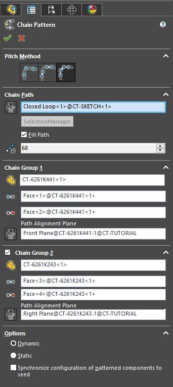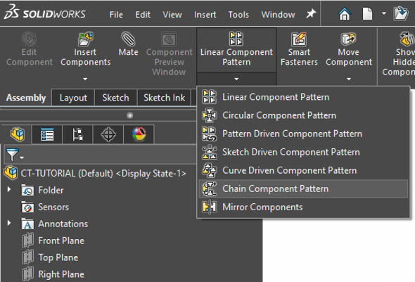 Once this is done, we will use the Chain Component Pattern function in SolidWorks.