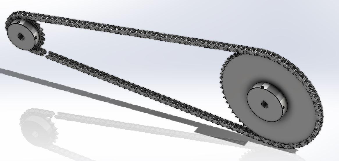 Now, let's add the chain links to the assembly. Remember that the pitch of both chain links must be the same as the pitch of our sprockets, in this example: 0.5".