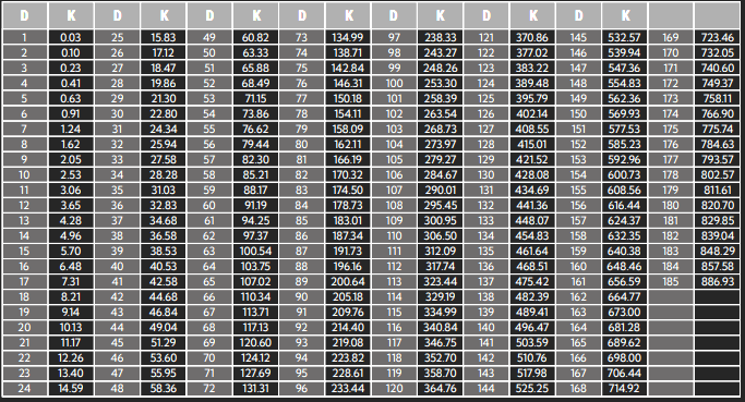 - D = Subtract the number of teeth of sprocket #1 from the number of teeth of sprocket #2 = 39. This value will be found in the following table: