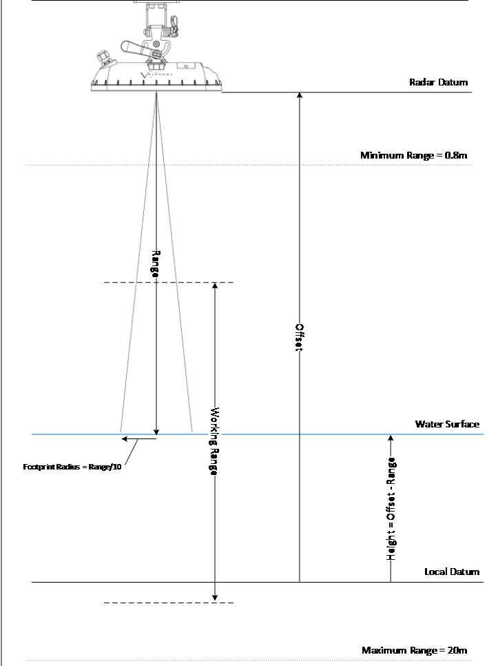 Please refer to the TideMaster manual https://www.valeport.co.uk/content/uploads/2020/03/VRS20-Radar-Level-Gauge-Operating-Manual-0745813c.pdf