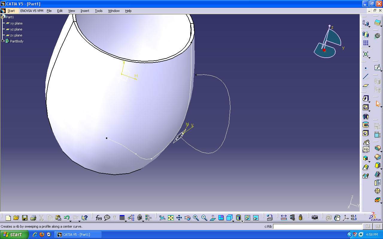 Now use "rib" feature. Invoke it from the main menu by using insert->features->rib definition or find it in the tool bar.