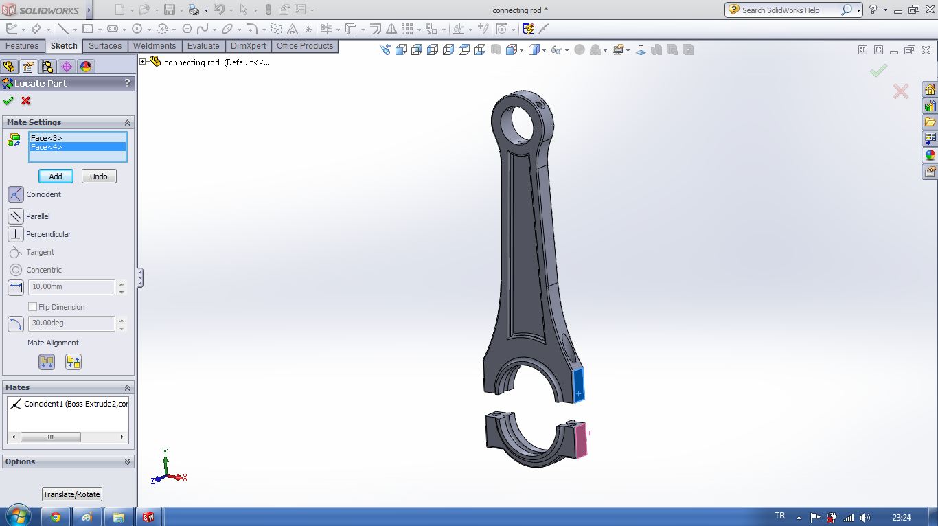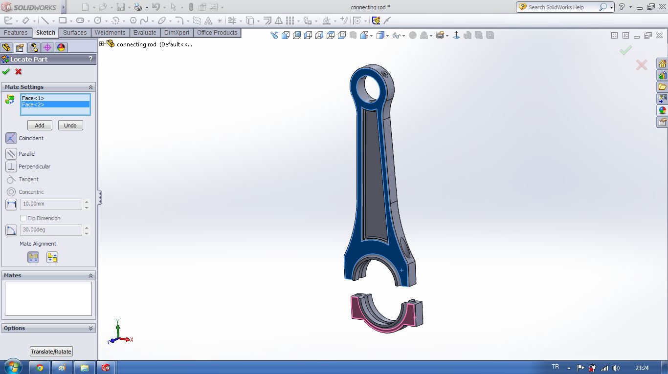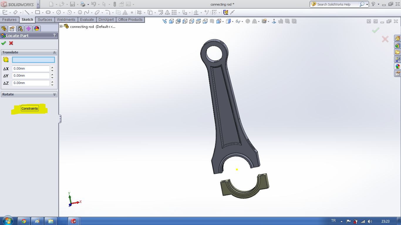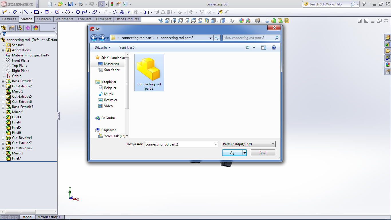 open connecting rod. use insert-part command and insert the connecting rod part 2
