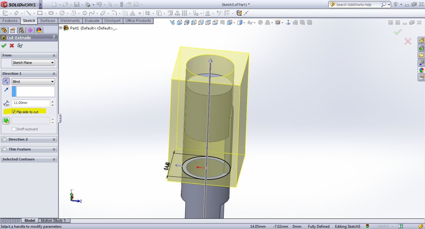 extrude it. please check the shown places. select offset option and enter 2,30mm. select up to surface option and click on shown surface.