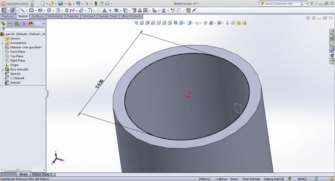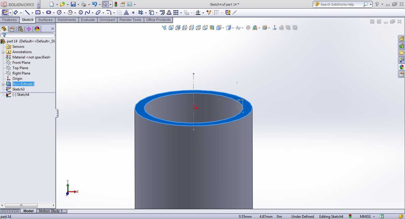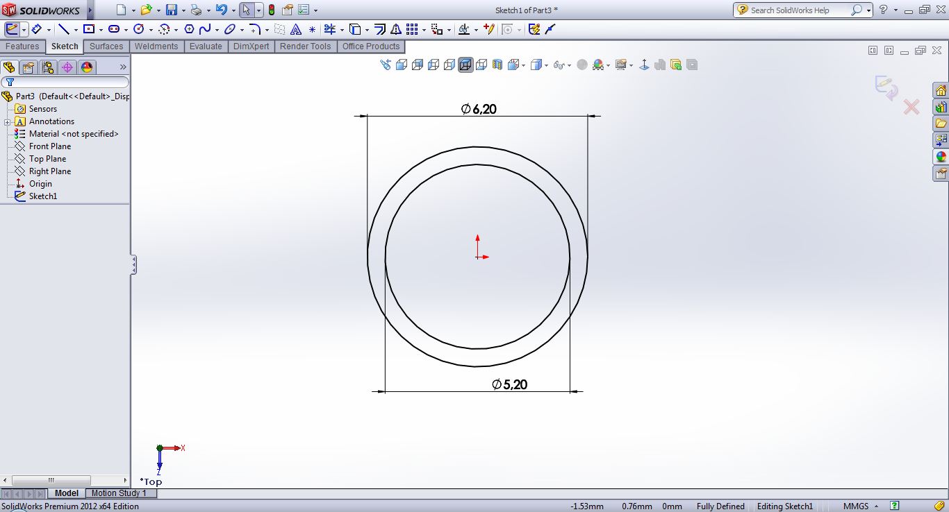 open a sketch on the top plane